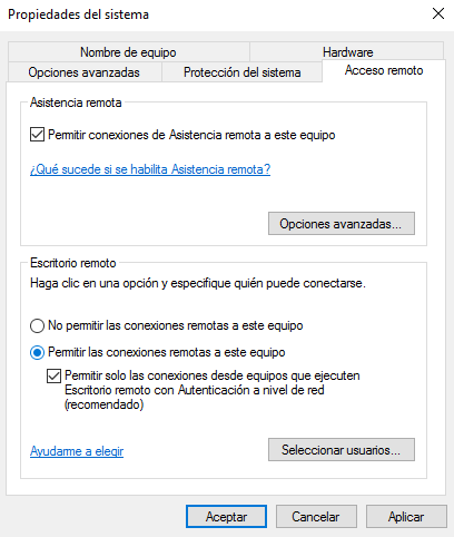 Ya tenemos habilitado el acceso al equipo por el puerto 3389 y el usuario para poder acceder es el mismo con el cual tenemos activada la sesión. Es muy importante que el usuario tenga contraseña, ya que si no es así no nos permitirá acceder y no funcionará hasta que le establezcamos una.