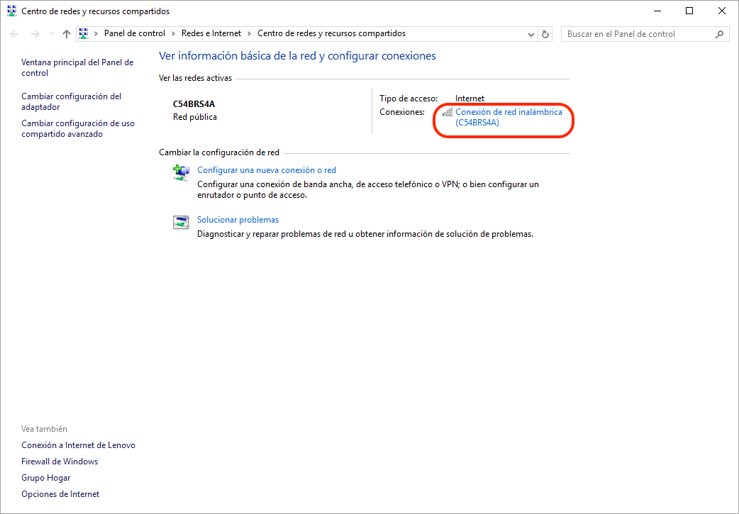 O pulsamos sobre Red Inalámbrica, si nos conectamos por Wifi:
